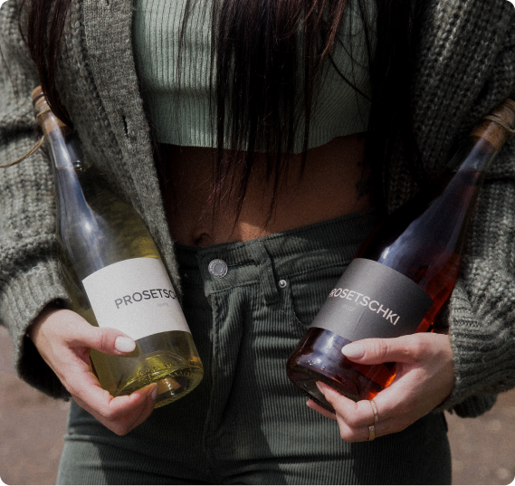 Das Bundle enthält 1x PROSETSCHKI WHITE und 1x PROSETSCHKI ROSÉ. Perlwein mit zugesetzer Kohlensäure.